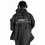 Satchler Bags’ new Deca Sound Rain Poncho (#PS606) is the ultimate weather protection for the working sound person. The Poncho is sized to comfortably cover a user carrying a mixer and fully loaded eargoniser bag. Its front section is made of transparent polyurethane for maximum visibility of working equipment. Slotted “pass-through” hand openings on either side provide quick and easy access to controls.