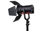 The light is also equipped with a convenient LCD display and control panel, making it easy to adjust the dimmer, colour temperature, and spot angle. It can be controlled via DMX512 protocol and has 3 DMX channels for dimmer, colour temperature, and spot angle. The FL-C60D also offers a USB power output for powering a wireless DMX receiver and has a wide input voltage range of 11-36V, making it compatible with various power sources. With its 4-leaf metal barn doors and U-shape and lighting stand mount, the FL-C60D is a versatile and essential addition to any lighting kit.