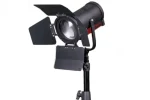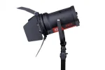 FL-C60D portable LED spot light adopts Chip-On-Board LEDs of 50,000 hours lifetime, 60W power, bi-colour, DMX adjusting focus angle, as the key light of interview light kit or field video productions.