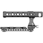 The top handle offers front-back and left-right adjustment, allowing you to position it exactly where you need it for the best handling and balance of your camera rig. Like the top plate, the handle includes 1/4″ and 3/8″ mounting points. Additionally, the handle is equipped with two cold shoe mounts and it can hold extra accessories such as lights and microphones, providing even more customization options for your setup. The camera grip connects with the safety NATO rail built into the top plate, ensuring that you can quickly attach or detach it as needed.