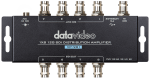 The VP-901 12G SDI Distribution Amplifier can distribute a single 12G, 4K, HD, or SD-SDI input into eight SDI outputs. It is a reliable video device, which splits an SDI, HD-SDI, 3G-SDI, 6G-SDI, or 12G-SDI video source to SDI compliant video displays simultaneously. It also supports re-clocking for a clean signal over long cable runs.