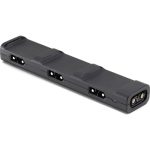 When connected to a DJI FPV charger, the DJI FPV Battery Charging Hub can be expanded to charge three additional batteries. It enhances efficiency by charging batteries in sequence.