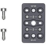 The DJI R Cheese Plate uses its 1/4″-20 and M4 tapped hole to mount onto the M4 tapped holes on the side of the gimbal or other accessories.