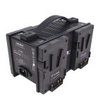 Hawk-Woods has released a new 4-channel V-Lok simultaneous charger that is more compact and stylish compared to their previous model. The charging current has been reduced from 4A to 3A to accommodate both MINI-VL and standard V-Mount batteries. This lower current helps to protect the battery’s cycle life. Despite the decrease in current, the charger still offers simultaneous charging for all four batteries, resulting in faster charging times.