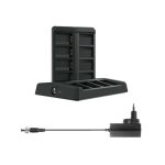 Adapter Type: Input: AC 100-240V 50/60 Hz Output: DC12/2A. Charging Current for Each Slot is about 420mA, with a Charging Time of about 2.5 hours. This charger is compatible with headset batteries for Solidcom series intercom systems, specifically the Hollyland Solidcom C1 (Pro) 8-Slot Battery Charging Case.