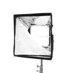The Astra IP Snapbag Softbox is engineered by modifier experts DoP Choice and uses a rapid mounting design that fits directly onto the fixture. The Snapbag’s high-intensity silver fabric interior maximises output through a 1/2 diffusion cloth that attaches using Velcro to prevent any light leaks.