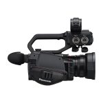 The unique design of all four models enables heat to be dispersed from the front panel thanks to a slimline fan. This increases reliability and enables the body to be as small as possible. The CX20 and CX18 include Panasonic’s VW-HU1 handle unit, featuring a two-channel XLR audio input and control, and bright, adjustable LED light for shooting in low light conditions. Users can also easily operate lens zoom from the handle unit.[1]
