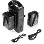 Two SHAPE 14.8V 98Wh Rechargeable Lithium-Ion V-Mount Batteries with SHAPE Intelligent Dual V-Mount Battery Charger 2V98PW