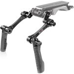 This product features a pair of black handgrips with multiple points of adjustment, making it compatible with Arri Rosettes. The patented Push-button technology allows for easy and quick adjustments, followed by a secure lock. The handgrips are made of rubber for stability and precision, while the locking mechanism is made of durable stainless steel. The handgrips also have threaded holes with locking stoppers for additional mounting options. Made of CNC machined aluminium, these handgrips are a popular choice among professionals in the industry.