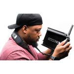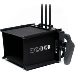 The 703 Bolt is compatible with this product, which features a 4-sided sun hood and mounting bracket. It should be noted that the monitor is not included and is only shown for display purposes. The sun hood is both sleek and functional, providing a solid connection for optimal use.