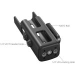 Incorporates a NATO rail, 1/4″-20 threaded holes, and 1/4″-20 locating holes to support multiple accessories across different scenarios.