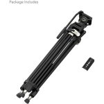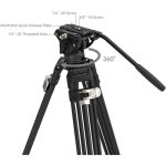 There is a detachable pan handle for easy storage and operation, and it suits both left-handed and right-handed users. The video head also comes with one 1/4″-20 threaded hole to support the magic arm and other accessories and a built-in wrench to help install and release the camera. Other features aluminium alloy tripod legs, lightweight and sturdy; and a customized carrying bag for better storage, protection, and carrying around.