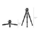 SmallRig Heavy Duty Carbon Fiber Tabletop Tripod Kit 5025 is a high-quality, heavy-duty desktop tripod crafted from carbon tubes diameters up to 25.5mm. It has a load capacity of 10 kg and can support a maximum payload of 3 kg, making it ideal for confined spaces such as desktop shooting, live streaming, and climbing buildings shooting. The tripod is compatible with ball heads, video heads, stabilizers, and other devices featuring a 3/8″-16 UNC screw hole.