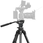 The kit includes a compact and lightweight hydraulic fluid head featuring an adjustable 4-step counterbalance system. When the gravitational center height is set at 55mm (2.2 inches), the 4-step counterbalance system effectively stabilizes cameras or other equipment (up to 6kg / 13.2lbs) while providing precise control over camera tilt. The fluid head allows seamless, stepless adjustments for tilt and pan damping, catering to filmmakers’ varying shooting preferences. The fluid head adopts a new Touch-and-Go quick-release mount plate design which does not require alignment and is more efficient than traditional slide-in plates. The plate is compatible with 501 quick-release plates and DJI RS series quick-release plates, facilitating swift transitions between stabilizers and tripods during filming. The user-friendly detachable telescopic handle enables easy control of the head when attached to either the left or right side, ensuring compatibility with any grip. The fluid head also features three 1/4″-20 threaded holes for attaching accessories like magic arms, along with a built-in flat head screw for convenient camera installation and removal. The tripod also includes quick-release rubber feet with integrated spikes, allowing for seamless adaptation to various terrains.