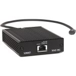 Unlike the vast majority of 10GbE adapters, the Solo 10G is pocketable—measuring a mere 3.1 inches wide by 4.5 inches deep by 1.1 inches tall—and bus-powered to enable truly portable use without a power adapter. Due to the use of the latest technologies wrapped in a rugged aluminium case, Sonnet designed a cool-running adapter that doesn’t need a fan, allowing silent and energy-efficient operation.