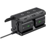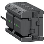 The battery adaptor can quickly charge up to four NP-FZ100 batteries in approximately 480 minutes via an AC adaptor, with the power charge condition indicated by a 3-level LED when the “remaining battery power” check button is pressed. It also offers the flexibility to choose between supplying power from the batteries or charging the batteries with the DC OUT/CHARGE switch placed at the center of the control panel.
