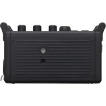 Filmmakers have at their disposal two 1/4″-XLR Locking Combo MIC/LINE Inputs, 3.5mm Stereo MIC Input, Camera In, Camera Out, Line Out and Headphone Out. Both 1/4″-XLR Combo Inputs supply +48V Phantom Power and the 3.5mm Input supplies Plug-In Power for microphones requiring a bias voltage.