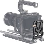 The mounting options of this plate allow you to mount a V-mount battery plate in a variety of ways either via the optional 15mm Rod Adapter or via any of the 1/4″-20, M4, or M3.5 threads.