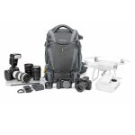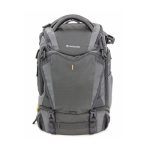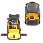 Designed for maximum capacity, it can fit up to a Pro DSLR with attached lens (up to 70-200mm f/2.8), 2-3 lenses, a flash, and accessories in the top 2/3 compartment and a CSC (Compact System Camera) with an additional lens in the bottom 1/3 compartment. If carrying less gear one can easily turn this backpack into a daypack or hiking backpack, deciding which separate access point is for photo gear and which is for personal or hiking gear.