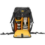 One half of the main compartment is designed to fit a Pro DSLR or Mirrorless body attached to a 600mm (f/4.0) lens or a wide range of 800mm (f/5.6) lenses. An adjustable thick, sturdy and well-padded cradle supports the camera body from below and secures the large lens in position, while making sure it is well protected all around the delicate connection point.
