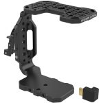 - The cage wraps around three sides of the camera, leaving the handgrip exposed for accessibility